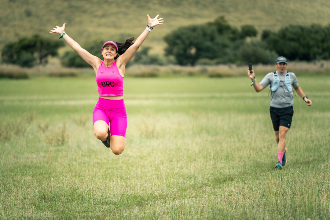 The 22 km route offers the best views. Starting beside the 100-year-old Nourse shed. The jeep track leads under a road culvert to the Java-friendly waterpoint and selfie zone. After a cappuccino and a quick pose on the Dwarsvlei couch, runners ascend a graded jeep track along Renosterberg.